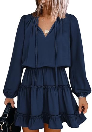 Womens Dresses 2024 Fall Summer Deep V Neck Elegant Bow tie Mini Dress S-XL