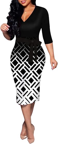 Women's Bodycon Work Pencil Dress Colorblock Back Zipper Office Business Dresses