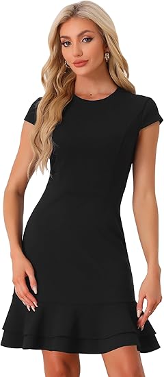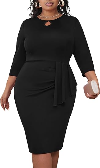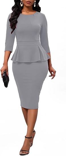Women's Peplum Church Dresses Bodycon 3/4 Sleeve Wear to Work Office Sheath Dress