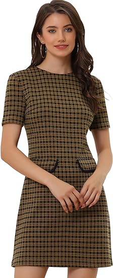 Work Dresses for Women's Short Sleeve Vintage Houndstooth Plaid 2024 Formal Sheath Dress
