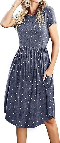 2024 Womens Summer Pocket Teacher Work Casual Knee Length Dress