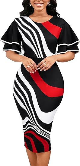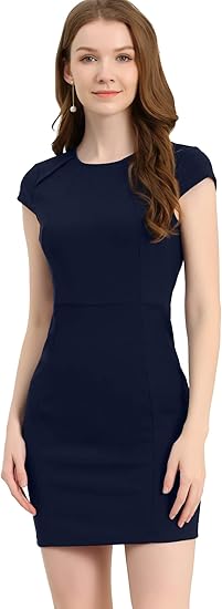 Women's Cap Sleeve Basic Slim Fit Work Mini Bodycon Dress