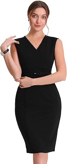 Sheath Dress for Women's Sleeveless V Neck Business Office Belt Pencil Dresses