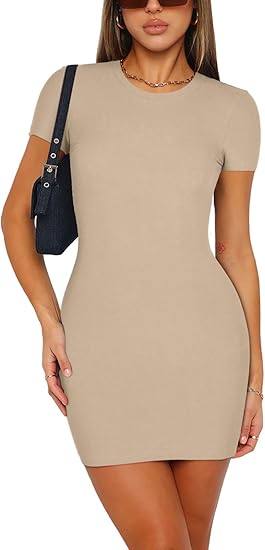 Womens Sexy Crew Neck Bodycon Short Dress Elegant Basic Short Sleeve Ribbed Party Club Mini Dress