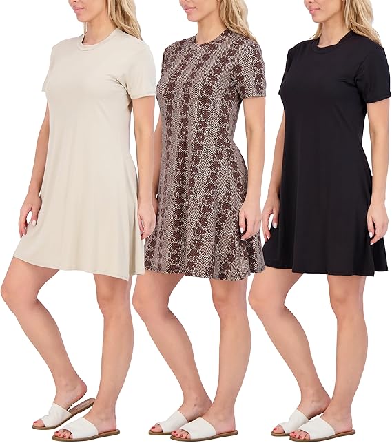 3-Pack: Womens Soft Lounge Swing Casual T-Shirt Dress (Available in Plus Size)