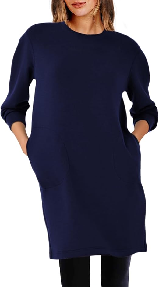 Casual Long Sleeve Sweatshirt Dress Women Air Essentials Crew Neck Dress Tunic Tops with Pockets