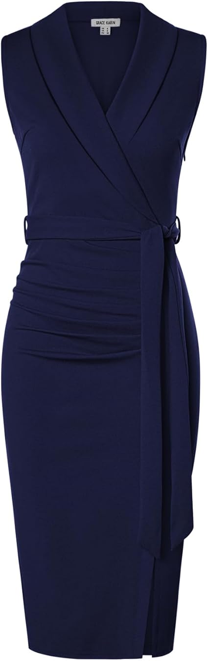 Women's Wear to Work Dress 2024 Surplice Neck Sleeveless Ruched Wrap Office Pencil Dresses
