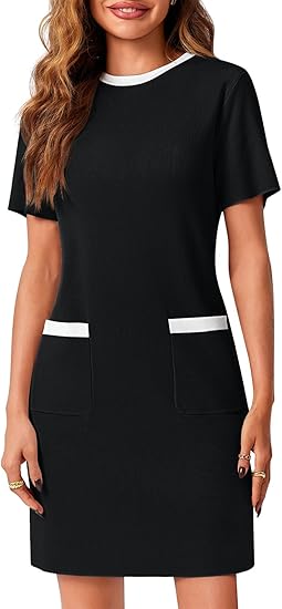 Womens Work Dress Business Casual Contrast Color Elegant Short Sleeve Knit Summer Mini Dress